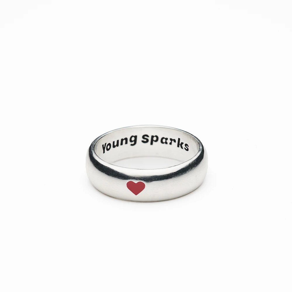 A ring made to be shared or held with love. Made from the old school concept of a minimal wedding ring with the diamond being replaced by a vibrant ‘loving’ colour of red. One could say it can be ‘the perfect’ Valentines gift. The first drop of our collection with a minimal stock. The product is made with a silver and chrome finish. Disclaimer, our rings are not made to be worn on a specific finger.
